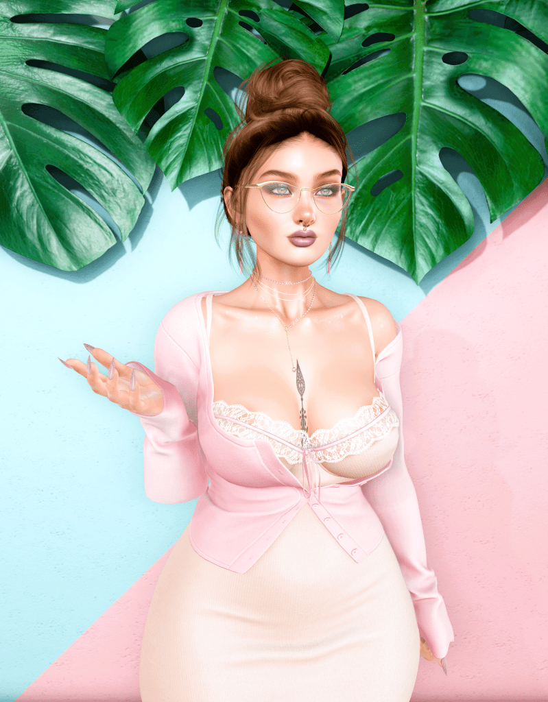 To be fair to ZENITH they haven’t even fully set up the booth yet but I just KNEW I had to have this and I am so glad that I did. It’s a cardigan and dress combined into one item, and upon zooming in the dress appears to be made from some sort of broderie anglaise style fabric . It hugs the curves and finishes mid-thigh with a lace edge. The body features lacing to the front and you can see that the bust is framed by lace as well, although the cardigan covers up most of the top half. It’s a short, loose style and I like the way that it’s been crafted to fit and the way that the sleeves finish on the wrists. The creasing in the fabric looks nice and authentic, too. You can purchase a selection of single colour combos for this one but honestly you’d be better served getting the fatpack; there’s so much that you can change the colour scheme on here: dress, cardigan, lace, ribbon up the front along with barely seen buttons and eyelets that mean you’re getting exceptional value for money from this purchase with lots of options for wear. The fatpack costs L$1199 (there are 11 colours included) with individual selections (of which there are six, so you’re getting exclusives in the fatpack) available for L$299.
