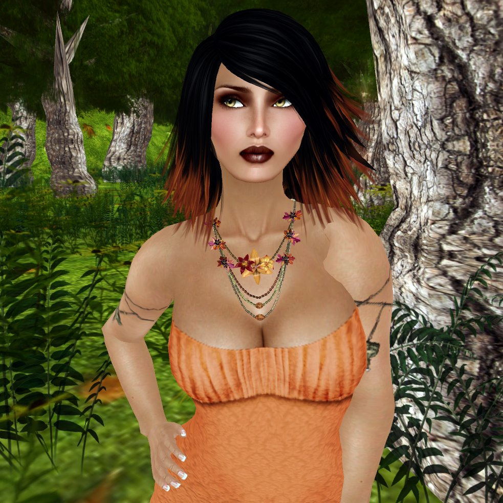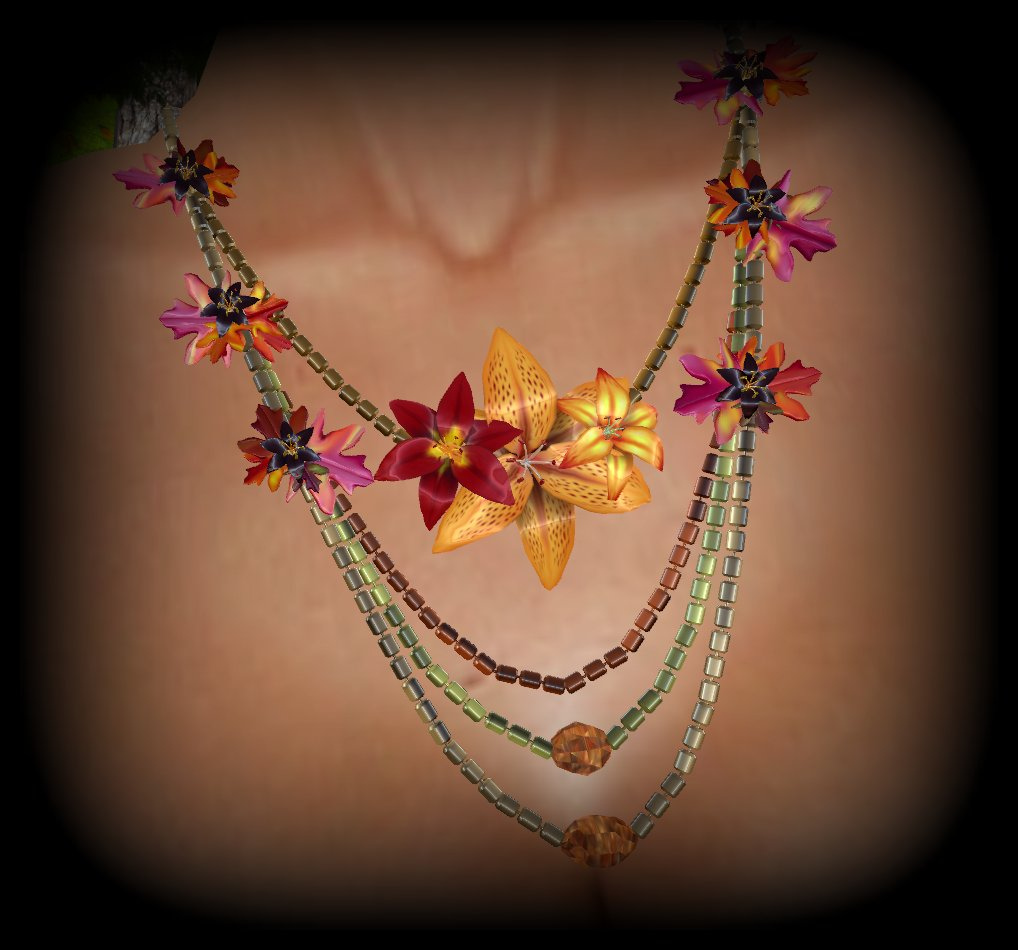 Because you’ve saved money on a dress you may want to consider purchasing a substantial necklace to wear with it, and if so I have the PERFECT suggestion…this wee beauty from SABLE ROSE. For a mere L$200 you can be the prod owner of this astonishingly beautiful Autumn necklace, which features various leaves and flowers in seasonal tones, mixed in with some co-ordinating beads and assorted other nicies. I don’t really need to describe to you how utterly fabulous this is; I’ll just let the picture speak for itself (Click to see a LARGE version of this image that helps you to truly appreciate the necklace..yes they are my boobies. Stop that.)
