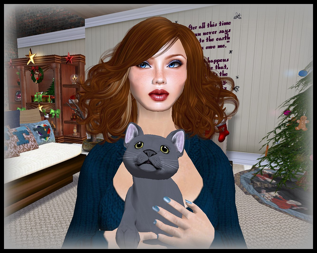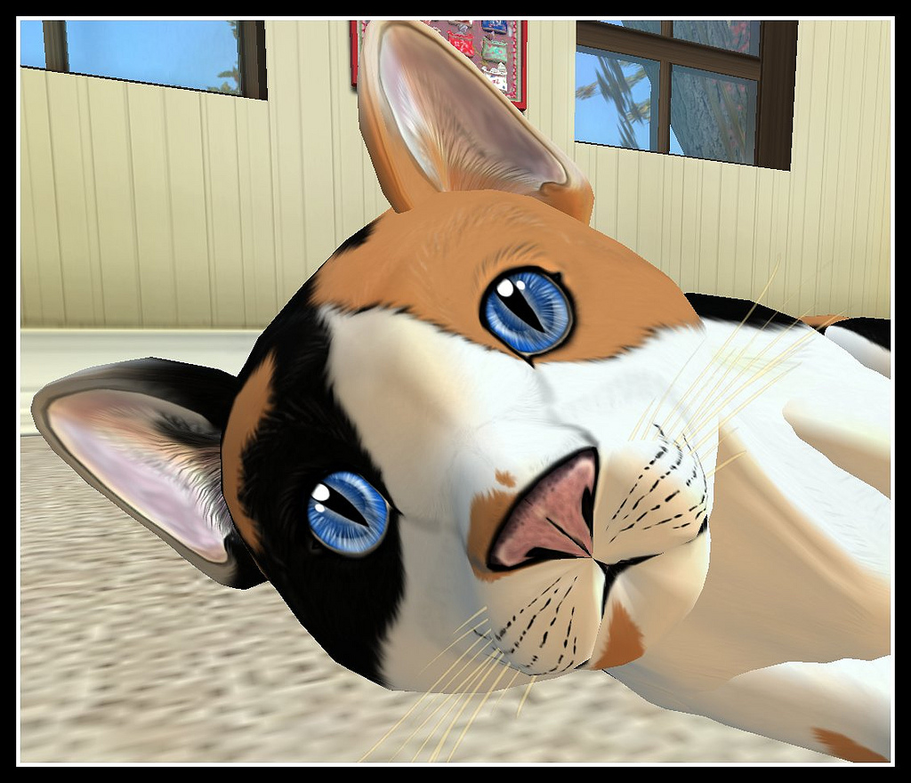 Like the bunnies before them the postures require adjustment to suit your avatar; not every avvie is the same shape after all so holding your cats will take a smidgen of tweaking, BUT it’s totally worth the effort. There are a couple of holds and a number of different postures for the cats, so experimenting with options, as well as trying various attachment points is highly recommended to get the best results. You can stick your cats to all sorts of spots on your avatar..’nuff said. This time around I’ve birthed many more cats than in my first Beta session and as a result have found tons more coat and eye colours in the starter packs. I’ve seen a number of eye colours with whimsical names such as ‘Canary’ and ‘Forest’ (Yellow and green obviously) but there’s also a stumning cobalt blue that I believe will be highly prized amongst breeders.