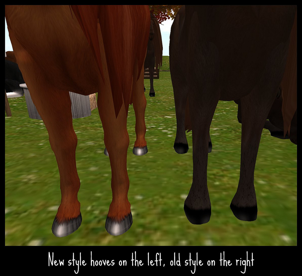 In my honest opinion, and this is just my opinion, the horse look so much better. The textures are clear and crisp, you can actually tell the white arabians from the white walkers now…same with the silver walkers and silver arabians. It makes each one that much more unique. The eyes have some life to them as well…they were dull before. For those of us that cannot run SL constantly on the two highest graphics settings…it was refreshing to be able to turn SL down to it’s lowest setting and still see the horses just as clearly.