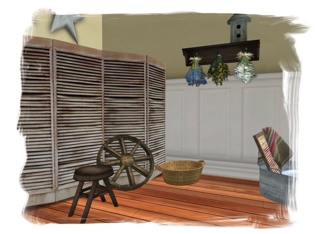 Yup, it’s a Shabby Chic Canopy Bed, and better still a FREEBIE. Again, TOTALLY girly-whirly but perfect for your Kittycats to slumber in a corner. I have no clue how long it will be available for so you’d better zoom on over (Click here) If this is just too pink and frilly for you, or you prefer a simple bedding arrangement for your furry chum how about a simple laundry basket? If you have mosey around the store to the farthest corner from where you came in, next to the garden entrance, you’ll find a simple but lovely 4 prim rustic basket that is just the ticket and I think looks especially good piled with Wildwoods:) It’s only L$25 so it’s all good!