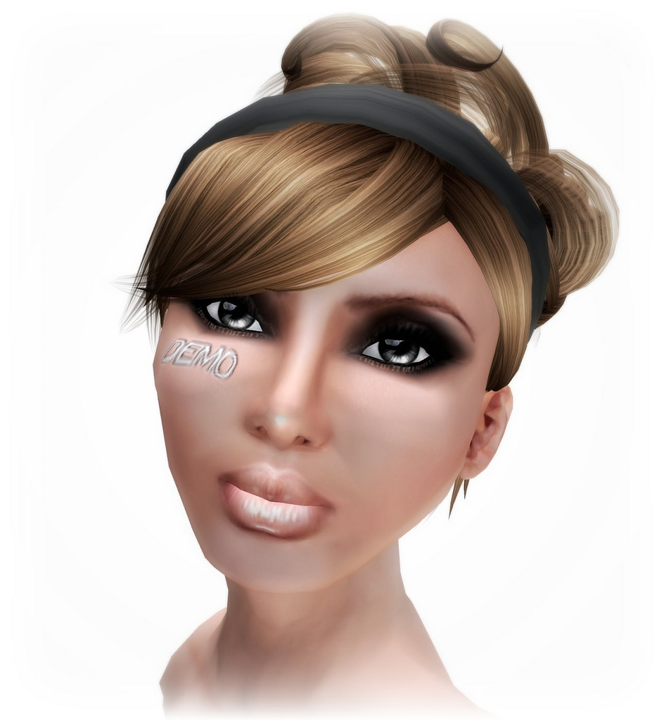 As for me? I’m going to share with you some images of some skins that I’ve spotted and really liked over the coming days.  These are all head-shots, but I can tell you that I’ve examined each demo carefully and unless otherwise specified it’s passed the ‘Kittywitchin’ Seal Of Approval’.  This year’s Skin Fair is  a real eye-opener, I’ve seen loads of new designers that I hadn’t heard of before and tried on lots of skins that I thought would look yucko that have actually turned out quite nice..yay for me! ( Apologies for the obvious ‘Demo’ markings on these images, I’m keeping an eye on my pennies:)