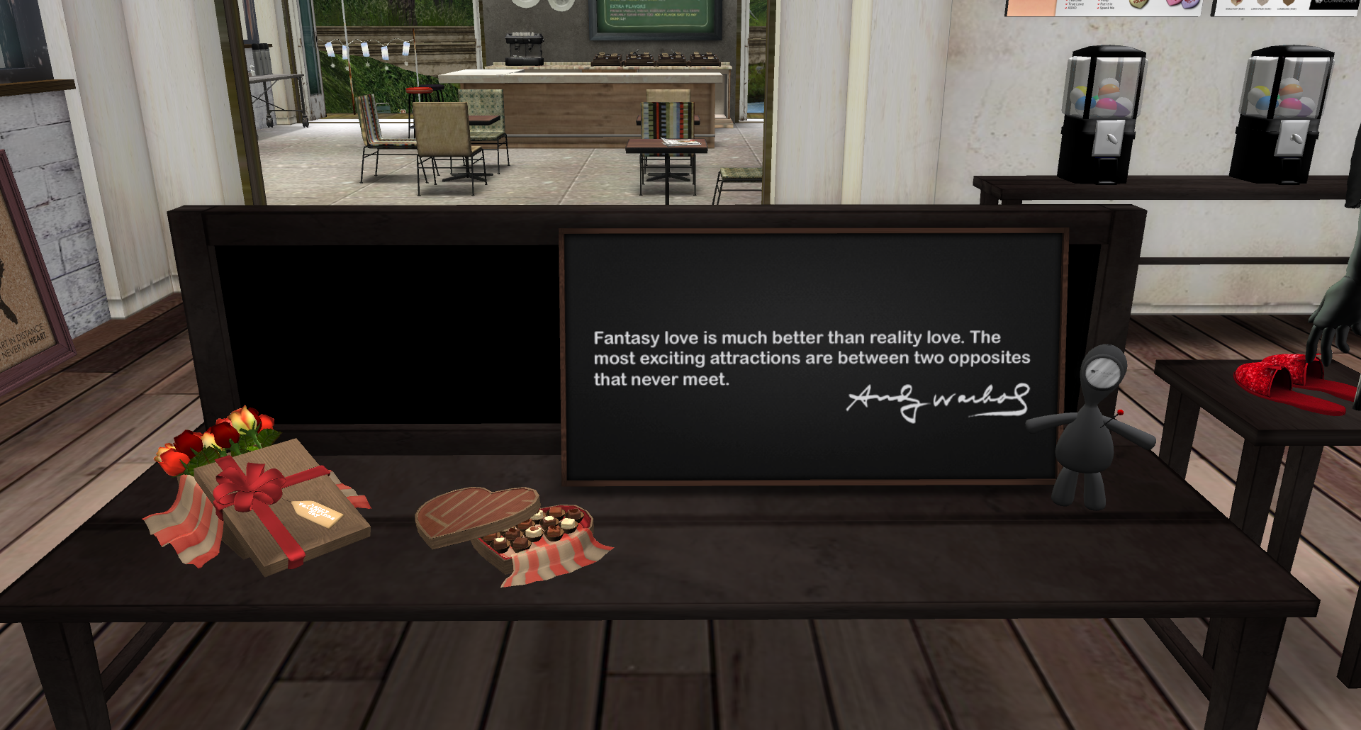 Incidentally, ‘Commoner’ has joined the Valentine’s lunacy that’s descended upon the grid with a very elegant bouquet of Roses and a lovely box of virtual choccies to share with your loved one. A steal at L$150 each and of course they’re transfer. ( Note: Fatpack version of both available on Marketplace at L$250 which will save you L$50, which is two Gacha punts. Ahem.)