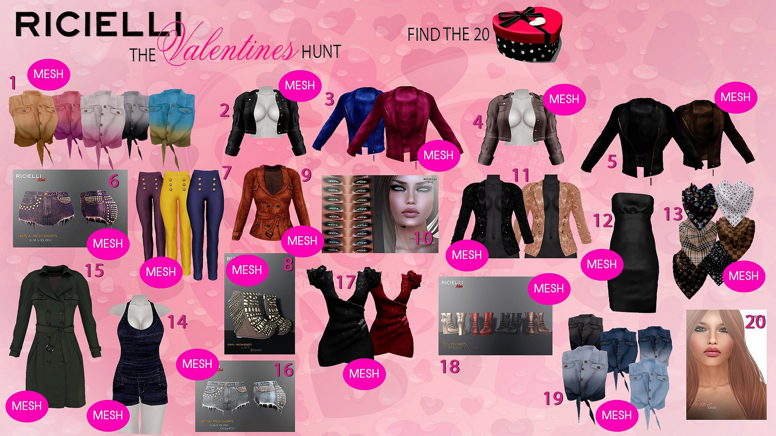 There are 20 heart-shaped boxes in this hunt, each can be bought for L$15. Some people don’t mind paying for hunt items, others do. I don’t mind if I know the retailer offers quality items and if I have an inkling of what is in store. Well fortunately for us Ricielli has gone the extra mile by supplying a poster displaying ALL the hunt items, so you can select which items you want to get..