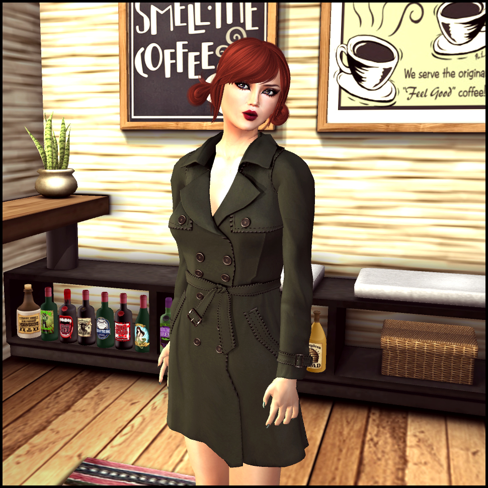 Speaking of black jackets, up next is hunt item number 5, a bang up to date leather biker jacket. Not only that, you also get a brown version of the same in the pack. It’s a terrific jacket and evokes rock chick chic wonderfully! (For just fifteen Lindens. The mind boggles!) For the sake of saving you the embarrassment of looking at my nethers in this shot I slipped on an old pair of knickers on in an apt shade of red, rather than go naked (Note to self: Buy new undies) You wouldn’t want to see the jungle that’s hidden down there. However, there’s a bit of Valentine’s nipple visible in this shot. WAHEY!