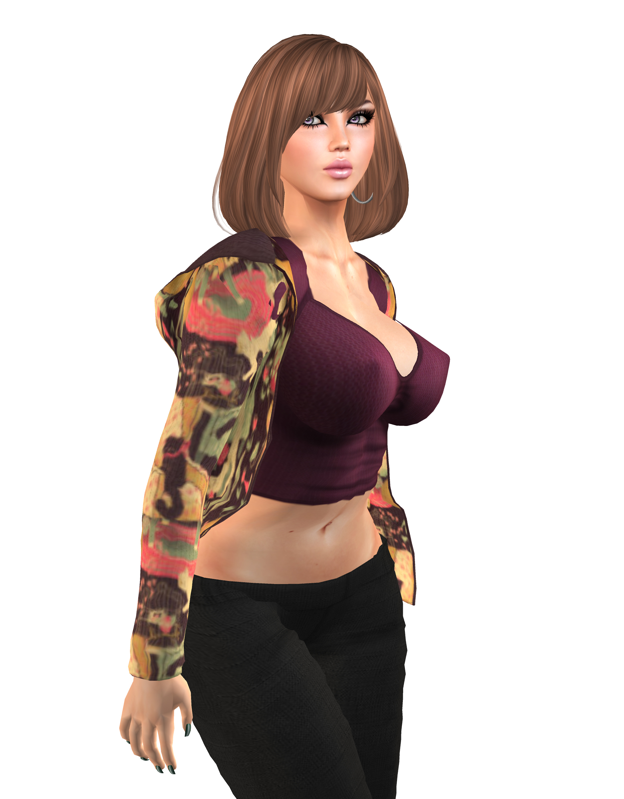 QE’s satellite store had only a few pieces on display, but they’re all great, especially the Cashmere Crops, available in an array of colours for L$120 each or a fat-pack of three tones in the same colour range for L$300. I’m wearing a purple cashmere crop in the pic, under the ‘Open Sweater’ by Ellemeno. (It’s a hoody!!) The mainstore is located at Jersey Shore, seems it’s still standing proudly in Second Life!