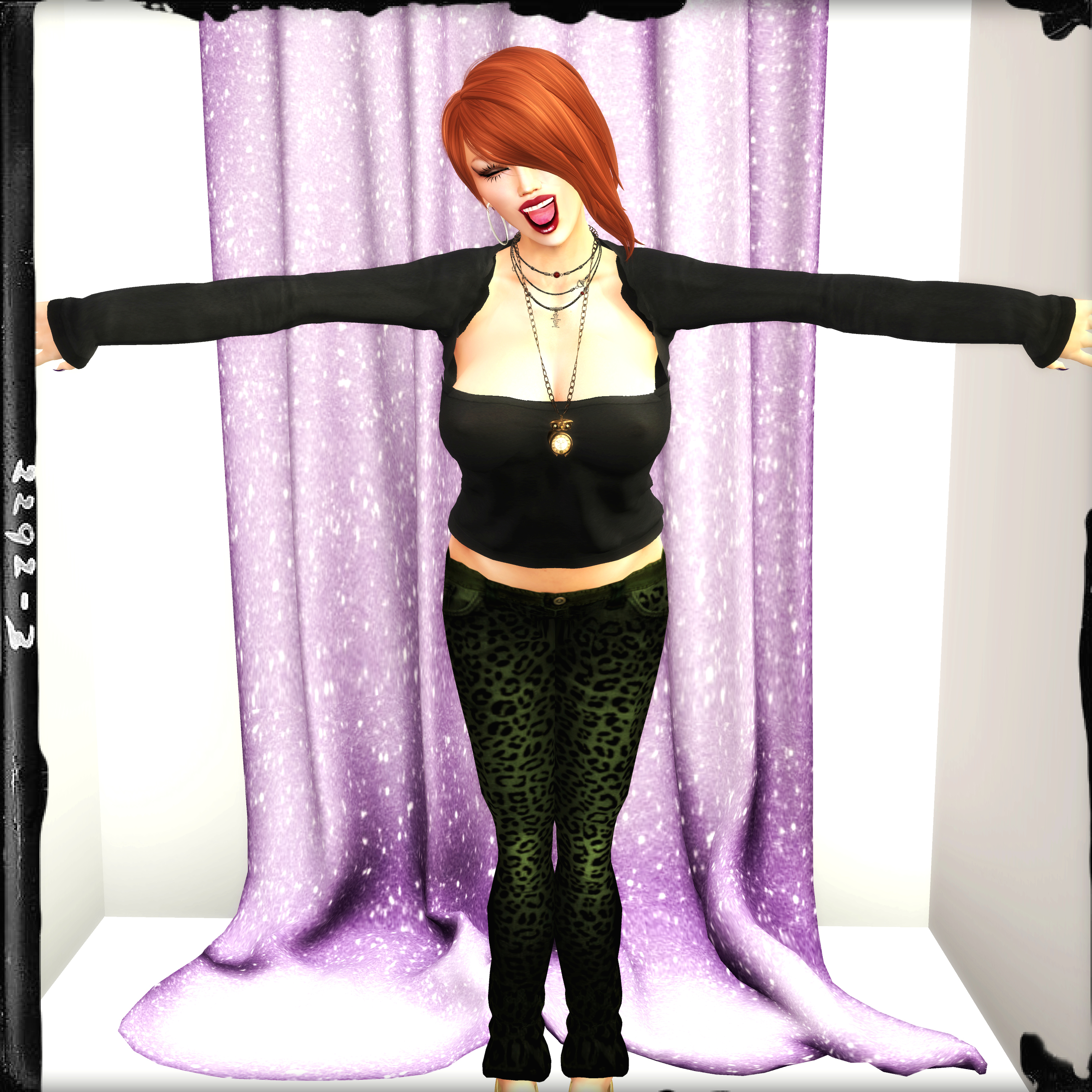 I teamed the outfit with a couple of necklaces; one which I’ve worn for a while now which is the Chinese motif necklace that’s sold as part of an outfit by Ducknipple. The Owl necklace was one of those things I’d forgotten that I had in my inventory, as you do. It was a happy find for me then, and funnily enough, it was from Happy Finds! (Run by the best named avatar in Second Life – Annoyingjapanesechild.dinosaur. Seriously!)  I’ve no idea how I forgot that it was there because I love owls, and this necklace is really well made and super cute to boot.
