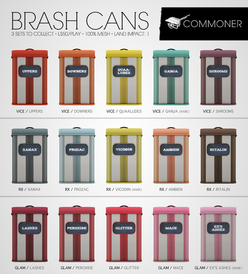 If you can recall my previous post about the COMMONER Kitchen Storage Jars then you’ll know I’ll be throwing some more Linden their way and trying to win myself some of these Brash Cans. There are three sets to collect featuring vices, prescribed meds and glam attire. I’m not sure which ones I’ll aim for, although at this moment in time some Xanax wouldn’t go amiss! (I’m British, I had to ask what that stuff was for on Plurk..)