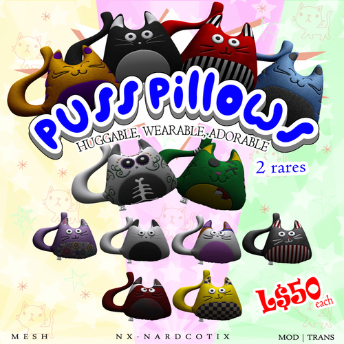 I’m all about collectibles, as my post earlier this week may have proved, so with that in mind I’ll definitely be visiting the NARDCOTIX ‘Puss Pillow’s vendor. I mean, this ticks ALL my boxes. Cats + Pillows= one happy kitty, and JUST LOOK AT THEM! They’re so bloody GORGEOUS! I’ll be having ALL of those thank you very much. L$50 a play, with a choice of 12 pillows to win. It’s hard to pick a favourite from the picture but I will really be hoping to get either of the two rarest in that machine.
