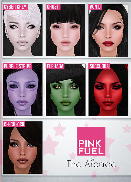There are a number of skin Gachas to play at the event, and all of them look totally fabulous so I guess I’ll be having a punt in all of them, but the one I will definitely be hitting a smidgen harder than the others is from PINK FUEL. Why? Well because they have a skin called ‘Von D’ which looks right up my street. There are 7 skins available in the Gacha and all of them look very enticing and original. The Elphaba, Cyber Grey and Ch-Ch-Oco skins have really caught my eye too; in fact I’d be happy winning any of them. L$100 for a quality skin? Yes please!