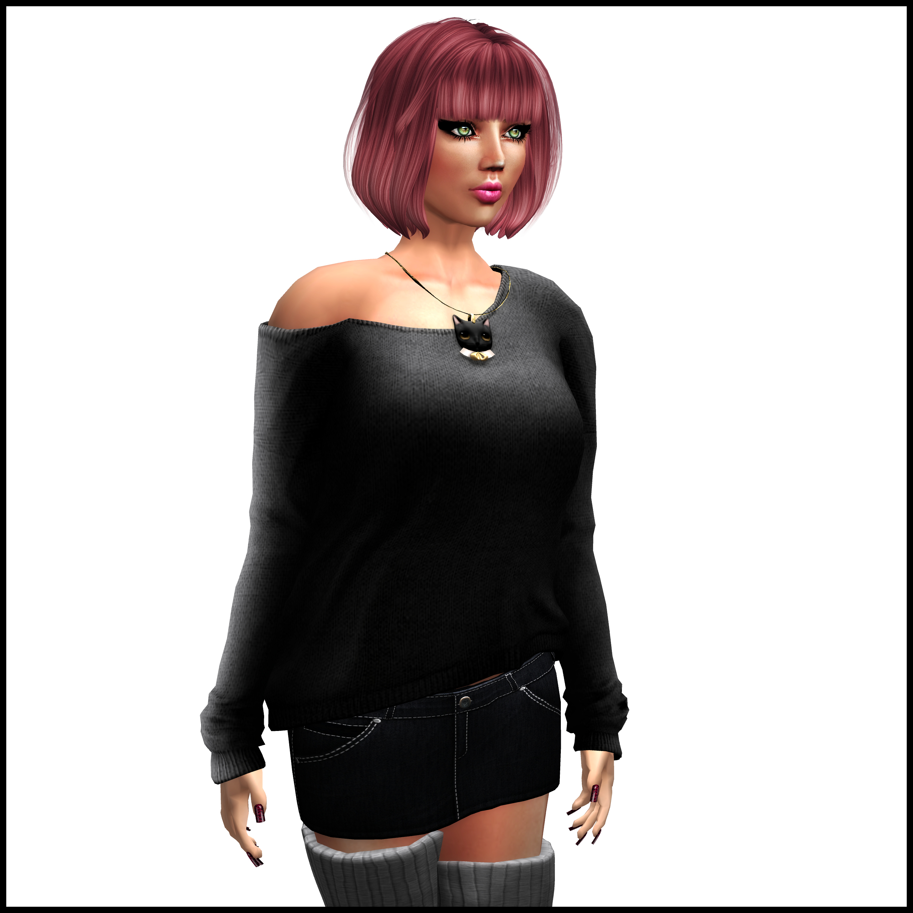 I swear to high heaven I would have bought tons of stuff (had I the lindens) but I settled for my glorious aforementioned ‘Cory’ Oversize sweater at the bargain price of L$165. There’s a fat-pack available containing all twenty varieties of sweater, and there are some great colour combinations and patterns available, all of them expertly created. If I had the Lindens I’d invest, but alas, one is being frugal. Boo to frugal. But I digress; it’s well worth a visit to Erratic just to salivate all over this glorious knitwear (Ewww!) but while you’re there be sure to check the store out thoroughly. You’ll find some great truly essential wardrobe pieces, including the delicious’ Amy’ silk blouse. This is a great item, with no buttons and a loose fit that would look fantastic worn with flats and jeans, but can easily be dressed up with heels and a mini in no time at all. Also worth your time is the ‘Carly’ hoodie and skirt combo. It costs a measly L$190(during the sale) and features a fabulous sleeveless hooded top and long skirt. It’s available in a variety of colours and designs, and any one of them would be an excellent choice but the pieces can be worn individually too. I chose the plain black option for my mix and match happy and I’m delighted with my purchase because I think I’ll get TONS of wear out of this particular ensemble. The sale lasts until March 31st and I urge you to pop along and spoil yourself.