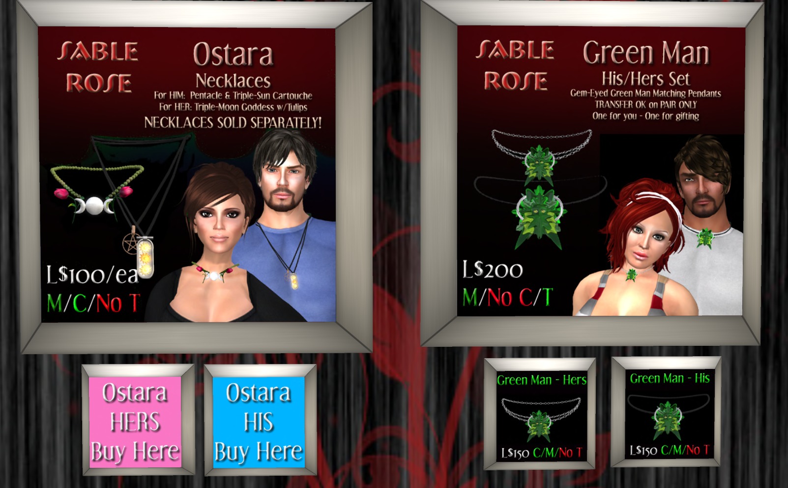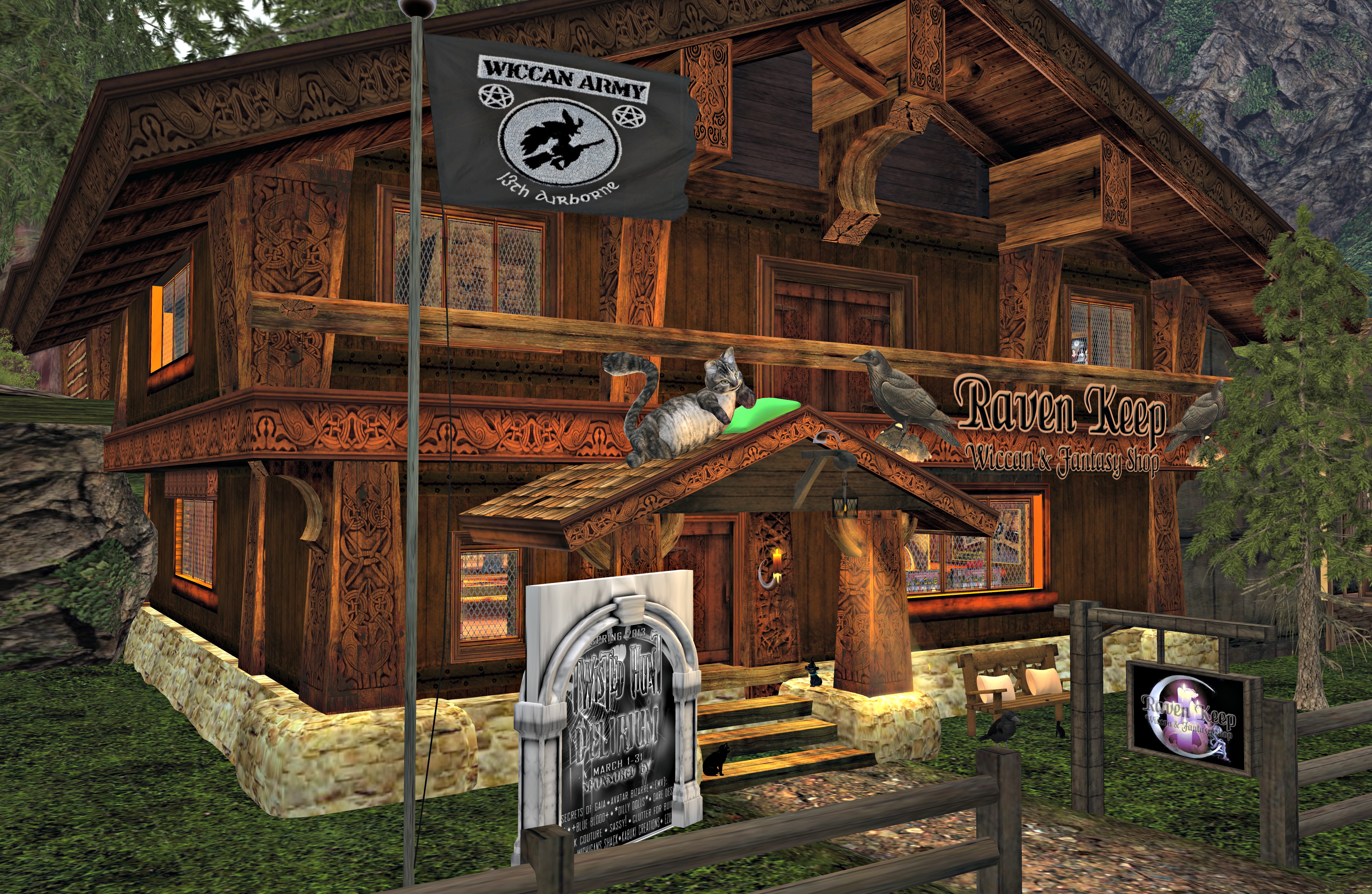 There are a great array of items here for any Second Life Witch to enjoy. You’ll discover lots of home ware at great prices, with many unique, pleasing touches. It’s clear that the owner, Karra Babii, has a great imagination which is just what you want to see when it comes to all things Witchy! You’ll see cauldrons in various sizes as well as weather-vanes, wiccan signs and textures and ritual equipment. There’s a black Altar that would certainly look the part at the centre of a ritual; with the black and shiny marble giving it a really masculine feel. Something for the male Witch in your life perhaps?