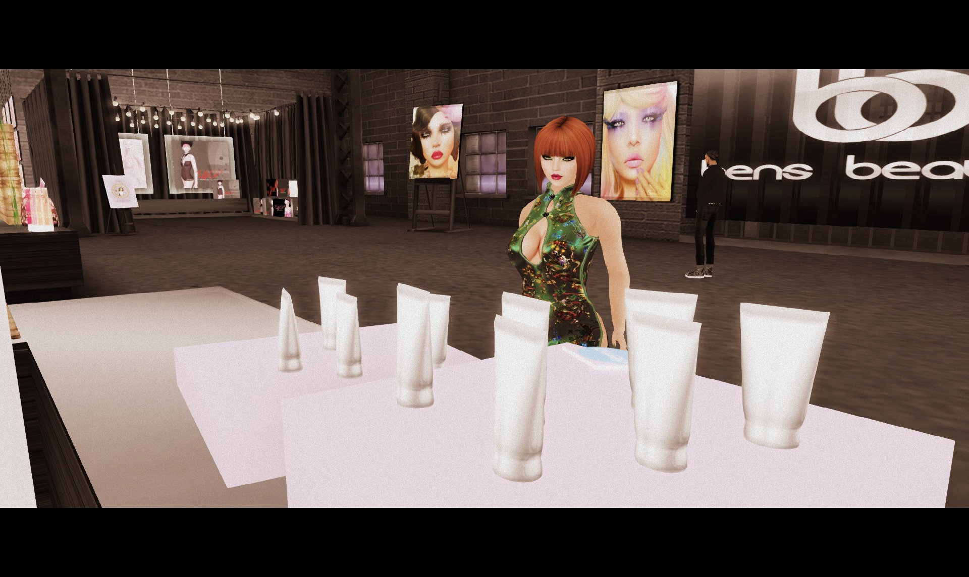 So what really got me excited at the show? Well if you’re looking for eye designs you’d be foolish to neglect Mons.  For me, Mons really leads the way when it comes to tattoo-layer make-up, because  they’re consistently brilliant and always look divine.   The alternative-styled  avatars out there will find extremely precise, gothic liners and brows at Nuuna, and if you’re looking for killer lips check out Pink Acid for the glossiest gob on the grid.  Every vendor is a winner and you’re sure to find yourself laden with goodies when you leave the sim.