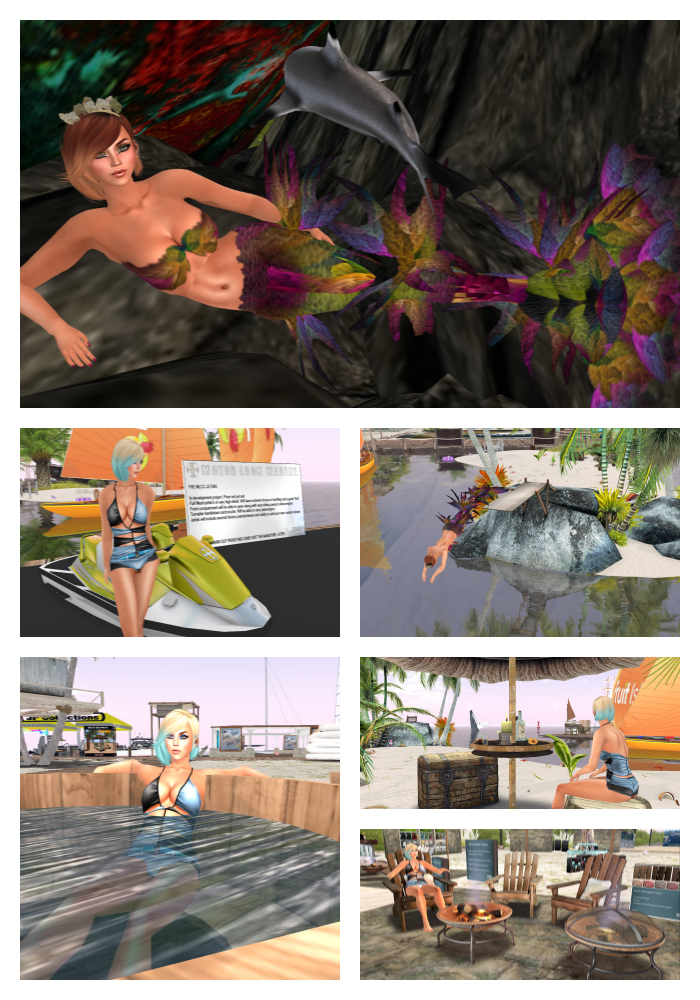And readers, you’re in for a treat if you like things watery! (No, not THAT kind of watery, just for a change!) There are contributions here from some of the best creators on the grid and you’ll find a huge variety of items for sale. When you TP to the upper landing point you can gaze out at some spectacular ships, sailboats and watercraft, but that’s not all, because there’s just as much action beneath the waves, where you’ll find an astonishing underwater paradise ripe for exploration. It’s also a great event to capture some fantastic photographs too!
