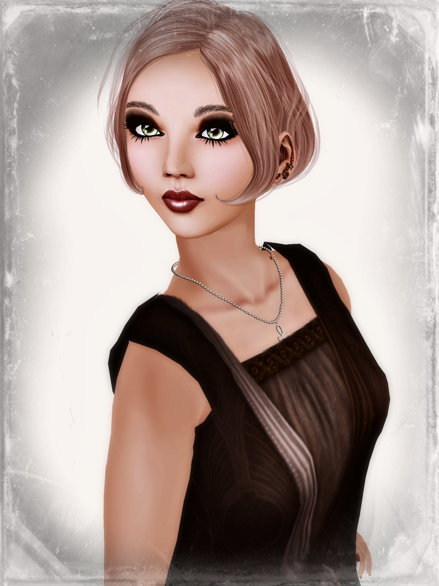 Because I said there was a vintage feel to this skin, I’ve dressed it Gatsby-style for the shots. I added hair by TRAM, and a glorious roaring Twentie’s style frock by SENZAFINE to my skin ensemble. Looks the part, don’t you think?