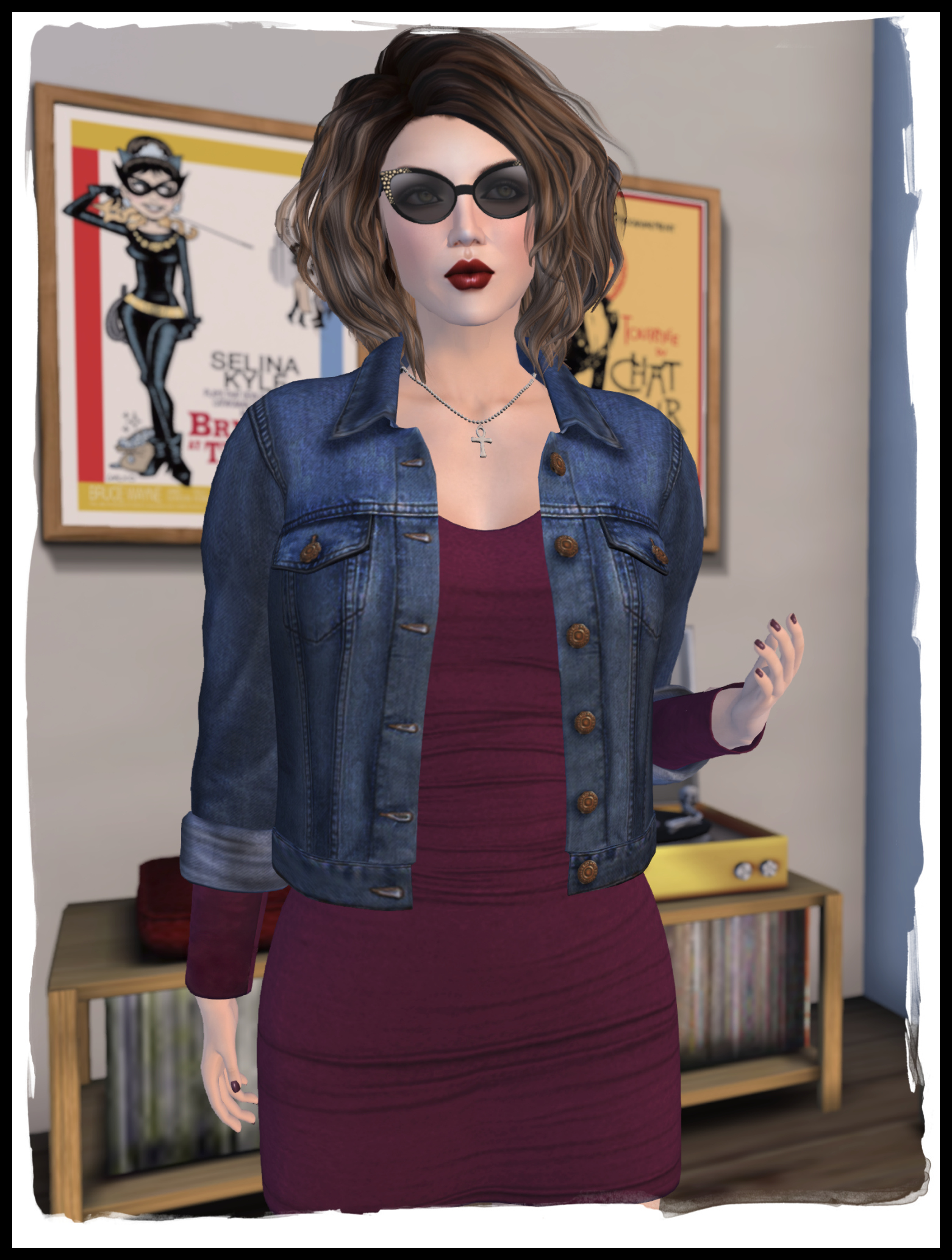 I teamed both these dresses with this essential denim jacket from EMERY. For some mad bonkers Kitty-reason I missed this when it was available at Fameshed, but no matter because I soon located it in store and eagerly tried the demo on before purchase, making sure I was wearing blinkers so I didn’t look at anything else because that would be bad. (I’m trying to save all my lindens for that event I’m not talking about, remember?)This is a ruddy marvellous jacket and I’m really pleased with it. It just looks so realistic, proudly bearing authentic button and stitching patterns on the body that make it look like the quintessential classic denim jacket that everyone owns . And so should you.