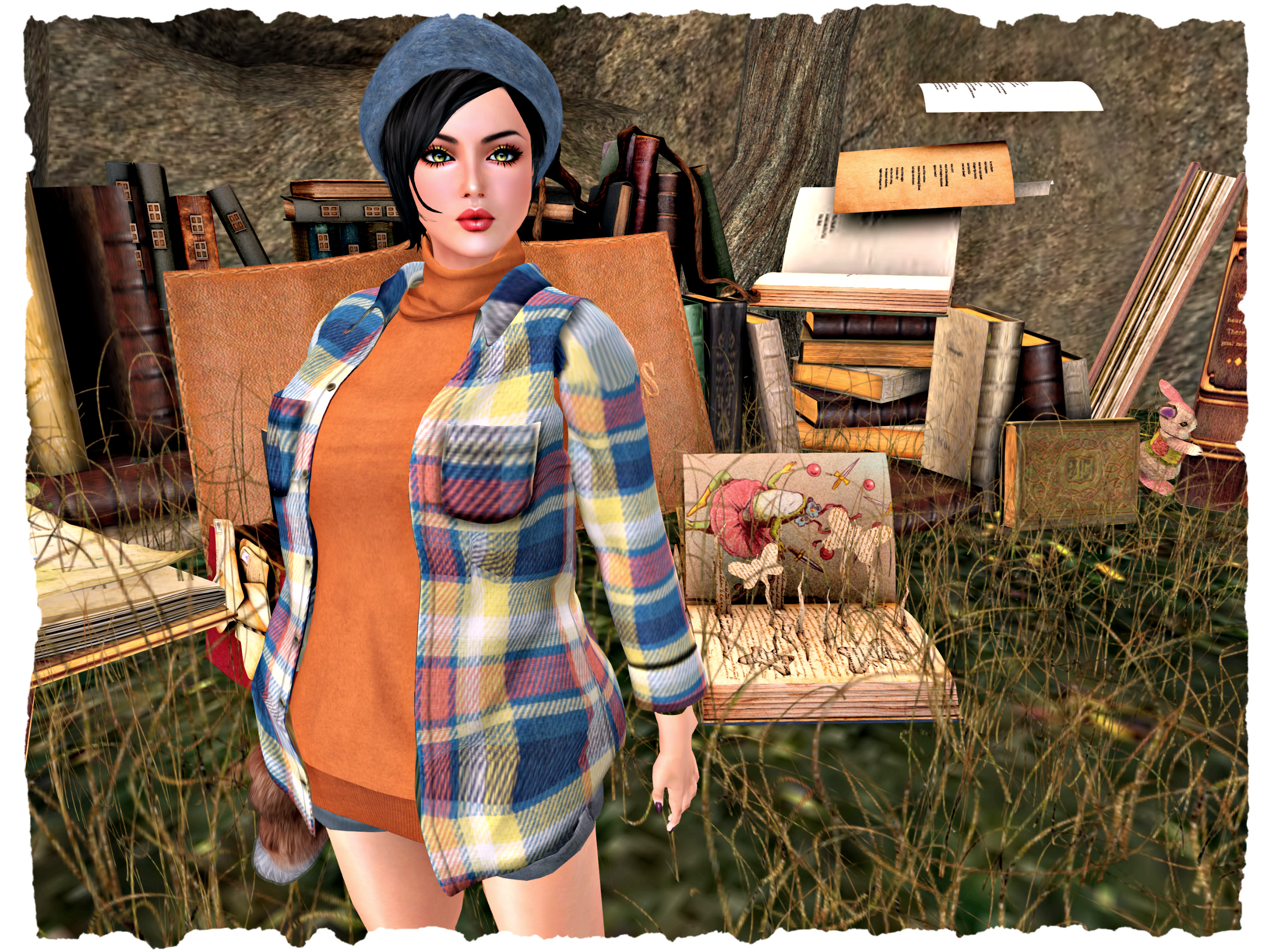 The Seasons Story is a perfect environment for taking photos. The backdrop above is actually comprised of the Gacha items that virtual design Goddess Sienia Trevellion (the name behind the LARK label) has at The Arcade this round. The books have been enlarged to create a really effective display, and they demonstrate the awesome imagination and skill that Sienia possesses. She is one of those people in-world who is a constant source of wonder to me and I cannot praise her work enough. In fact, all the designers I’ve featured here today are an absolute joy, and one of the reasons why I love my Second Life so much.
