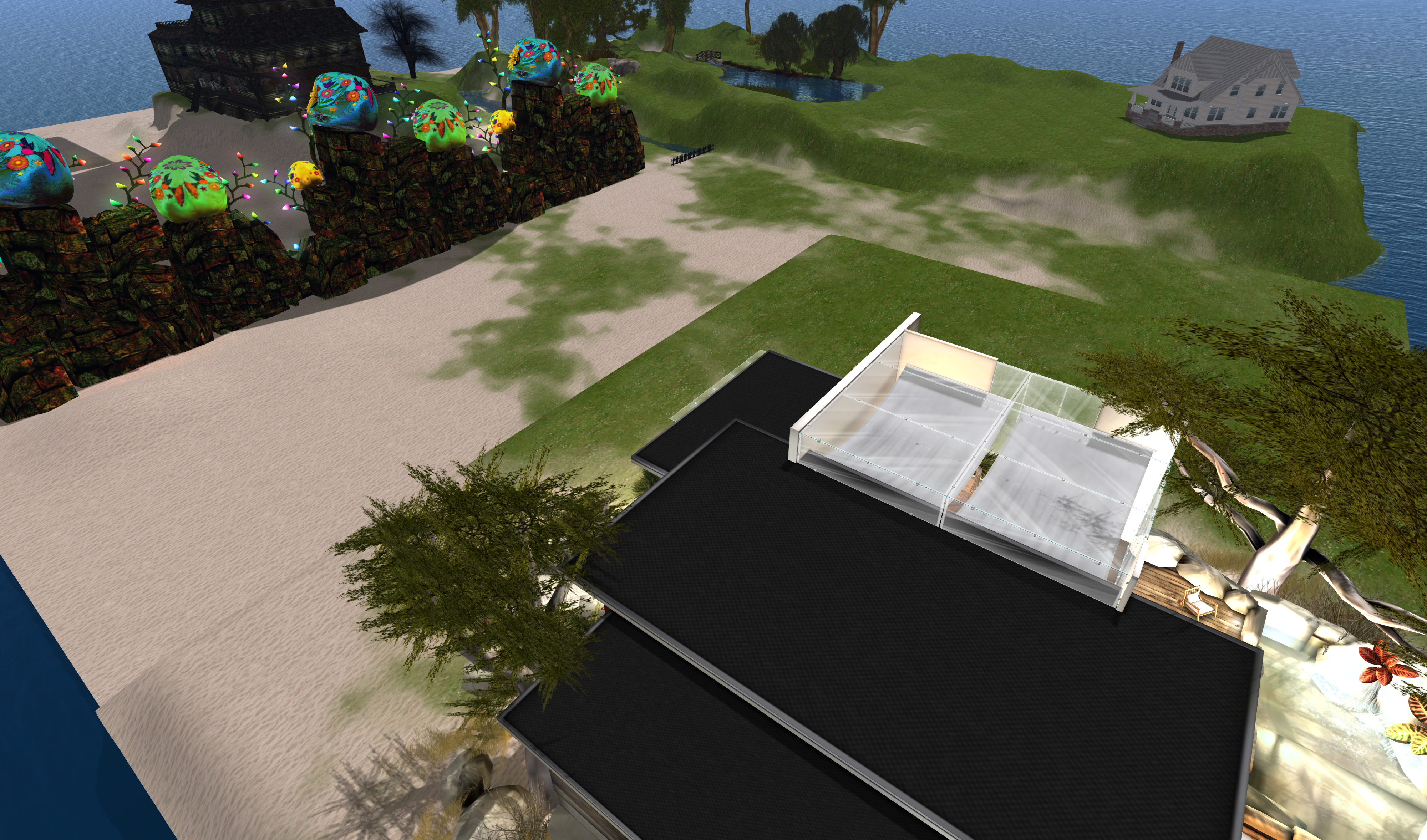 I’ve placed it in the corner, on an elevated portion of the land so that I can benefit from the sea view, which is perfect for the back and left side of my house. Here’s an alternative view: