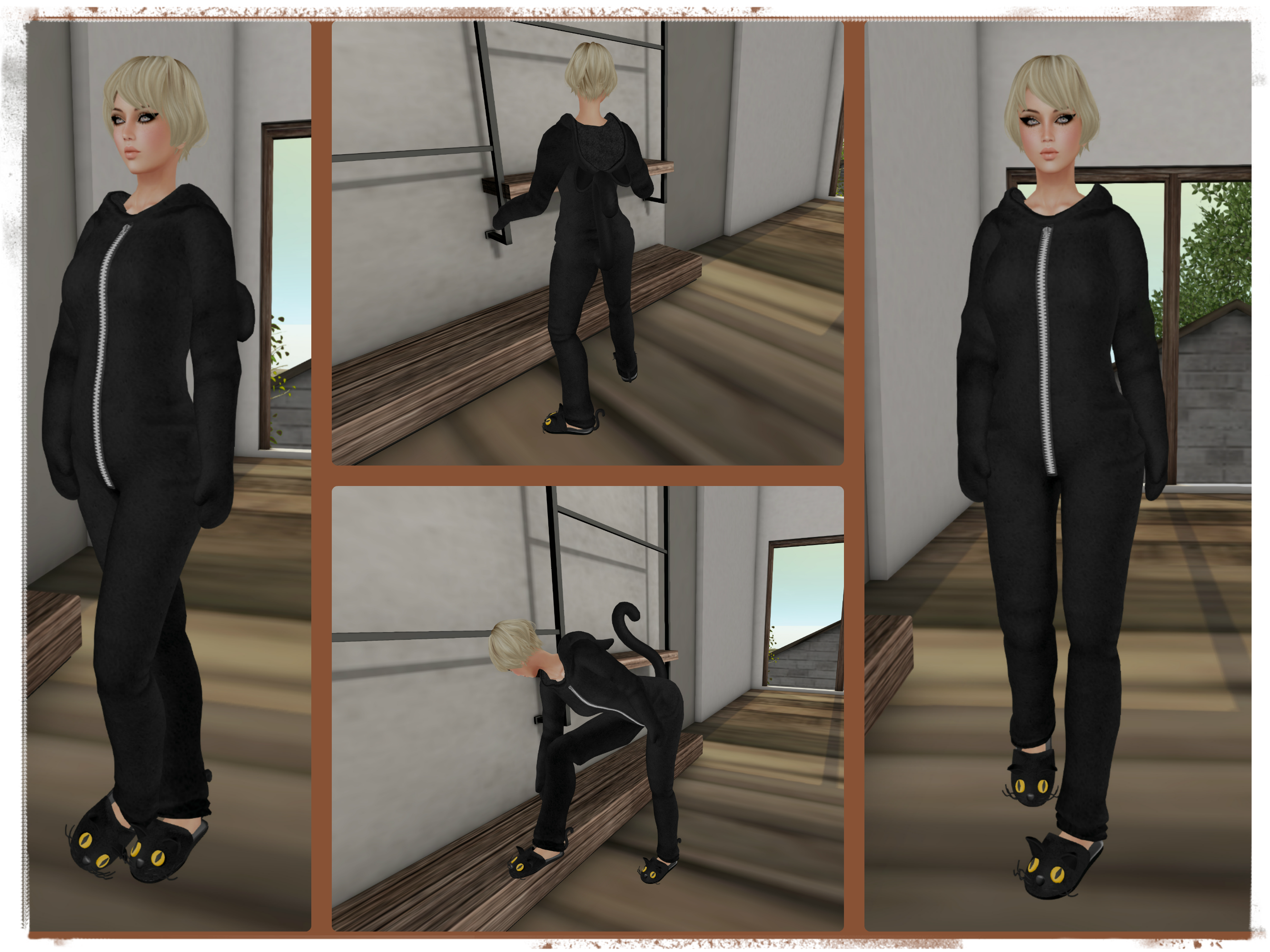 Alas, until this week I hadn’t found a onesie in Second Life that was worthy of Kitty’s wearing, until INTRIGUE CO. dropped THIS upon the grid at Collab88: