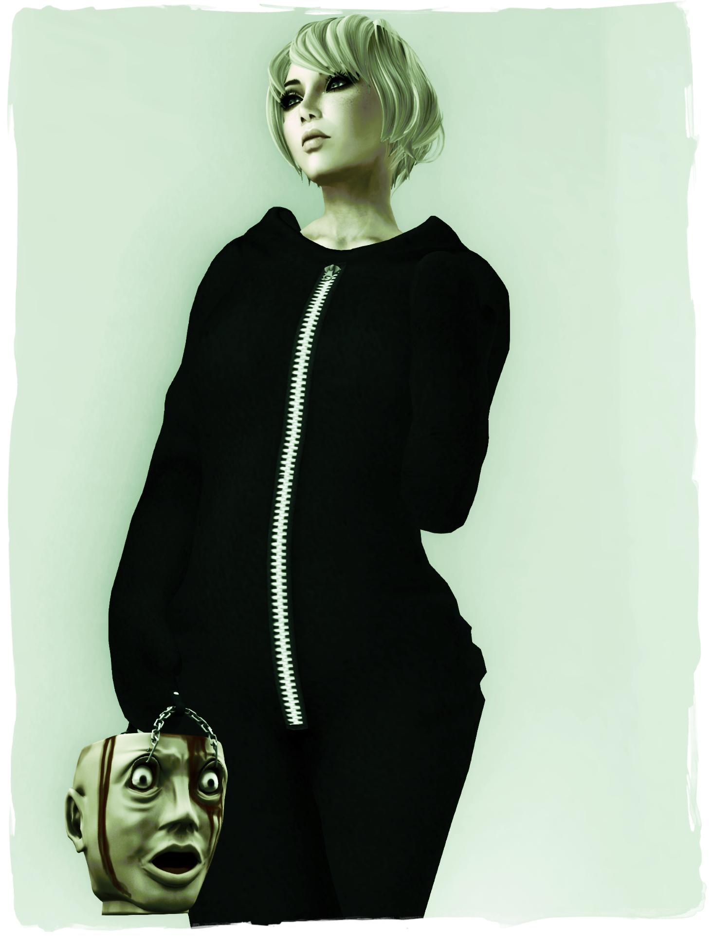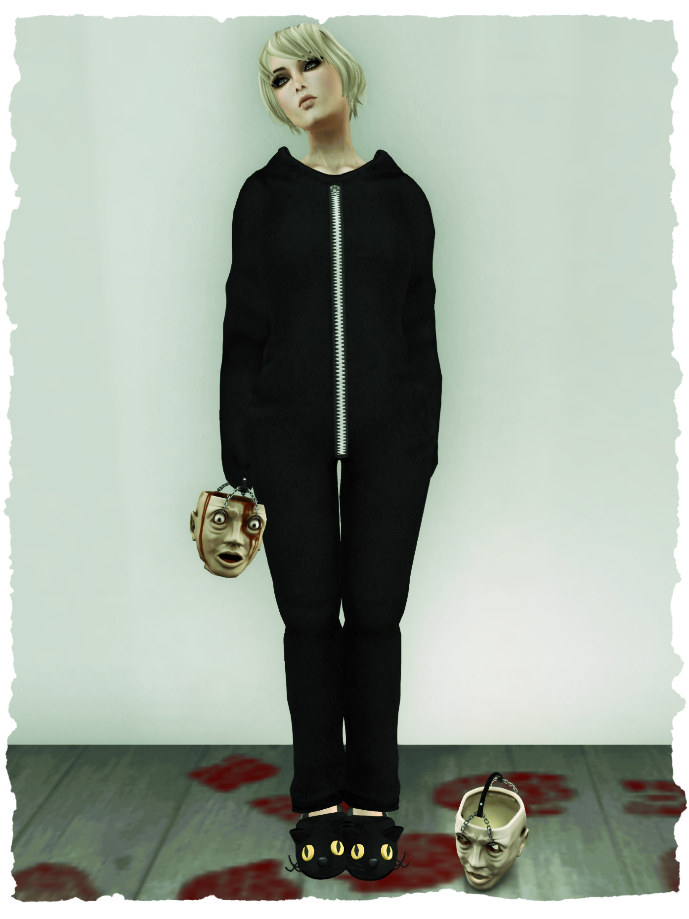 The ‘Bloody Candy Bucket’ can be worn or rezzed, and you can even click for a tasty lollipop to be dispensed, although I fear the flavours will be a bit off. Adenoid Surprise or Tasty Tonsil treat anyone? The lollipops are actually pretty clever, when attached they cause a face emote to appear…YUM! You can also get a filled version, but the pictures were all taken before I went out to annoy the neighbours. I think if you carry these you can pretty much guarantee you’ll get as many treats as you like…