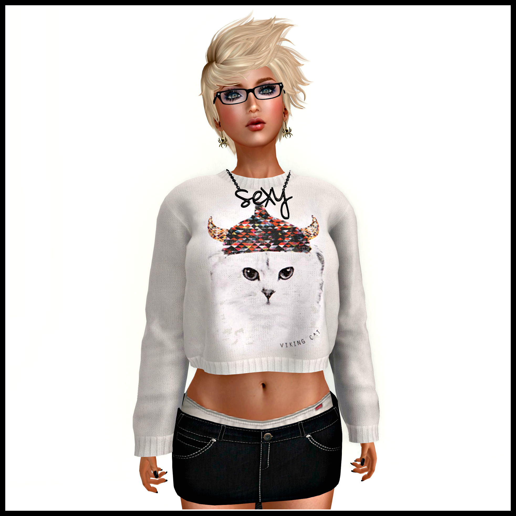 Last but not least, I had to include this Viking Cat sweater that I’ve had lurking in my inventory for an age. I added some ‘specs-appeal’ and geeked this look up a little, but unfortunately I cannot find this sweater on sale anymore. But I like it so you’ll just have to gaze longingly at me dressed in it..ahem! (Note to self, check product availability BEFORE you take photos for blog post..)