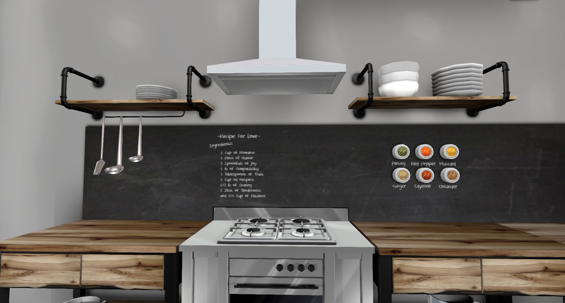 This is a 100% original mesh production, and you can choose from either a PG OR an Adult version of the kitchen. Of course, like all Bazar products, there are some excellent quality animations included in the package. The poses are fantastic and will enable you to have some brilliant encounters with your loved one (although it’s a bit unhygienic being so intimate in the kitchen, don’t you think? No? Just me then.) I guess you can’t help it when feelings of desire overcome you as your chap stirs soup sensuously! The oven is pretty nifty and has multiple cooking modes so you can pose as a cook par excellence and ‘prepare’ soup, meat and fish, my favourite dish. You can also wash dishes and clean the kitchen should you wish. Everything that you need to bring your virtual kitchen to life has been thoughtfully included by Ria.