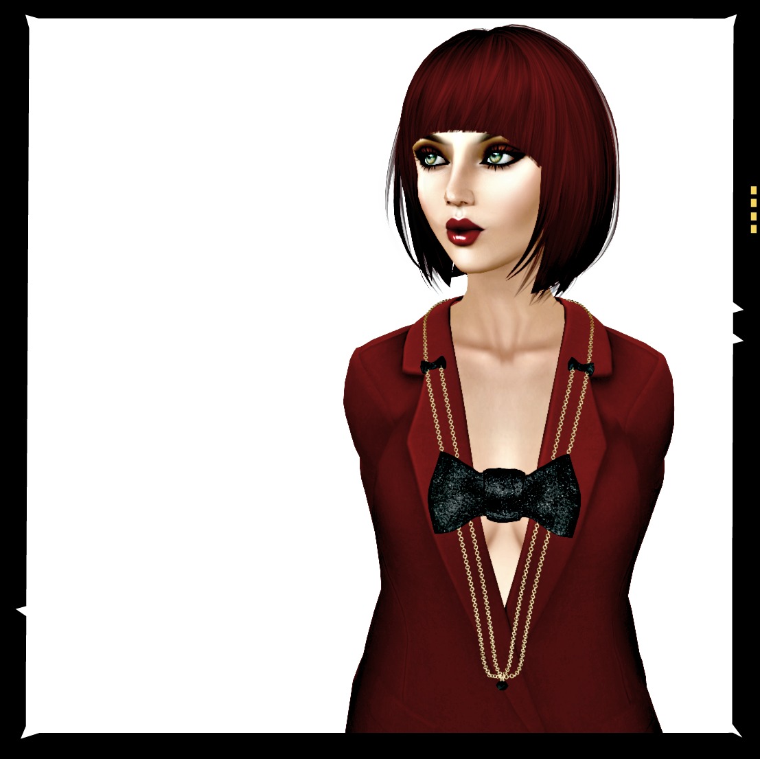 So onto my snaps, which are a little bit 1970’s, hence my referring to them as vintage. I styled this skin in the fanatastic ISON suit that is available at this month’s Collabor88, and coupled with this fabulous ‘Harriet’ bob from Truth and rather ostentatious bow necklace from LARK came up with this rather funky look. It’s further enhanced by some make-ups that I picked up at Skin Fair 2014 (and will be further writing about) from MADRID SOLO, my new make-up label of choice. I’m wearing an eyeshadow and lip-colour from the ‘Seductress’ range, along with my favourite MONS eyeliner.