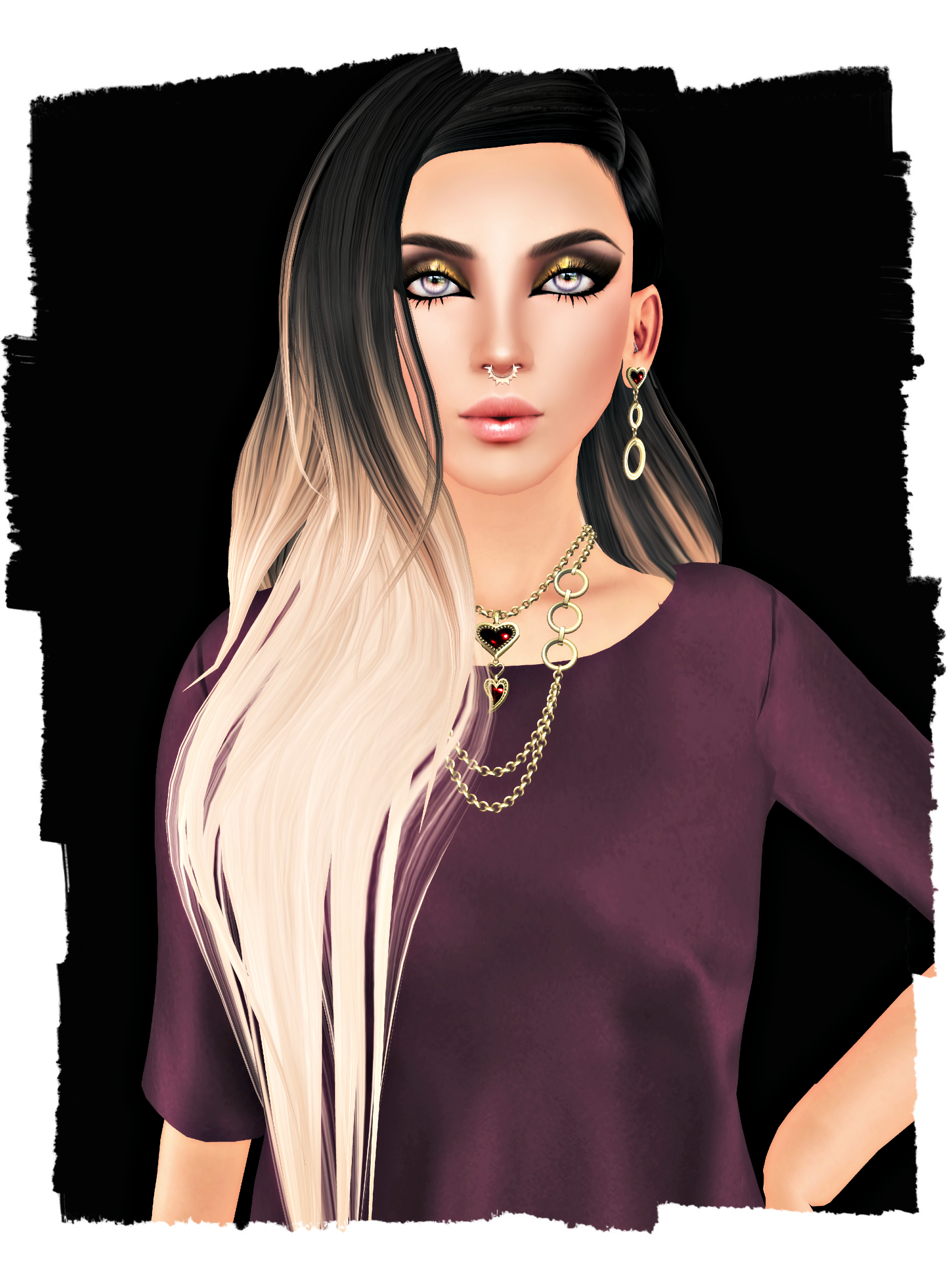 I’m also modelling some jewellery from JEWELRY FAIR 2014, this time from a brand called GEWUNJO.  I confess I’d never heard of the brand before and I think with a name like GEWUNJO I’d remember them, but I’ve been impressed by Andy Berenohn’s work. This KALZANG set is available at the event and features earrings and necklace that are both HUD controlled to change metal and gem colours. I think these pieces are bold without being over-bearing; they’re chunky and well made but sit well on the avatar and are easy to fit.  They make a statement without being too ostentatious and look perfect teamed with this loose hairstyle and a simple shift.