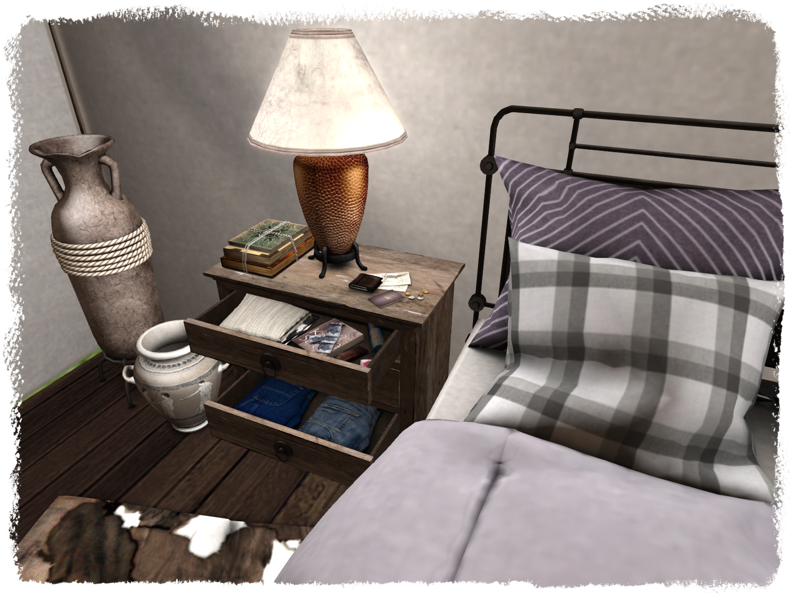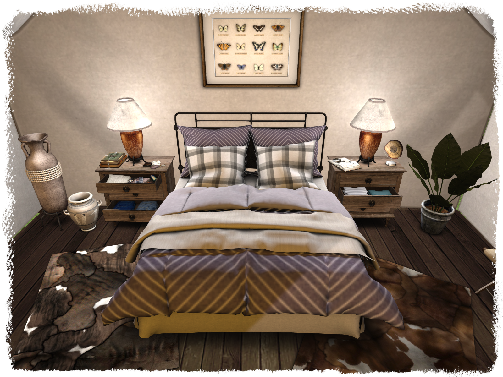 Never one to skimp on details, Ria’s included night stands that are texture change and incorporate items inside the drawers. This looks really authentic, and I particularly liked the inclusion of a few ‘naughty’ bits in the top drawer of the Double Bedroom chest! There’s also a texture changeable writing desk to match (again filled to the brim with animations),  chairs, planters and surface decorations to make your tent look comfortable, all with the hint of opulence and extravagance that only Glamping could provide.