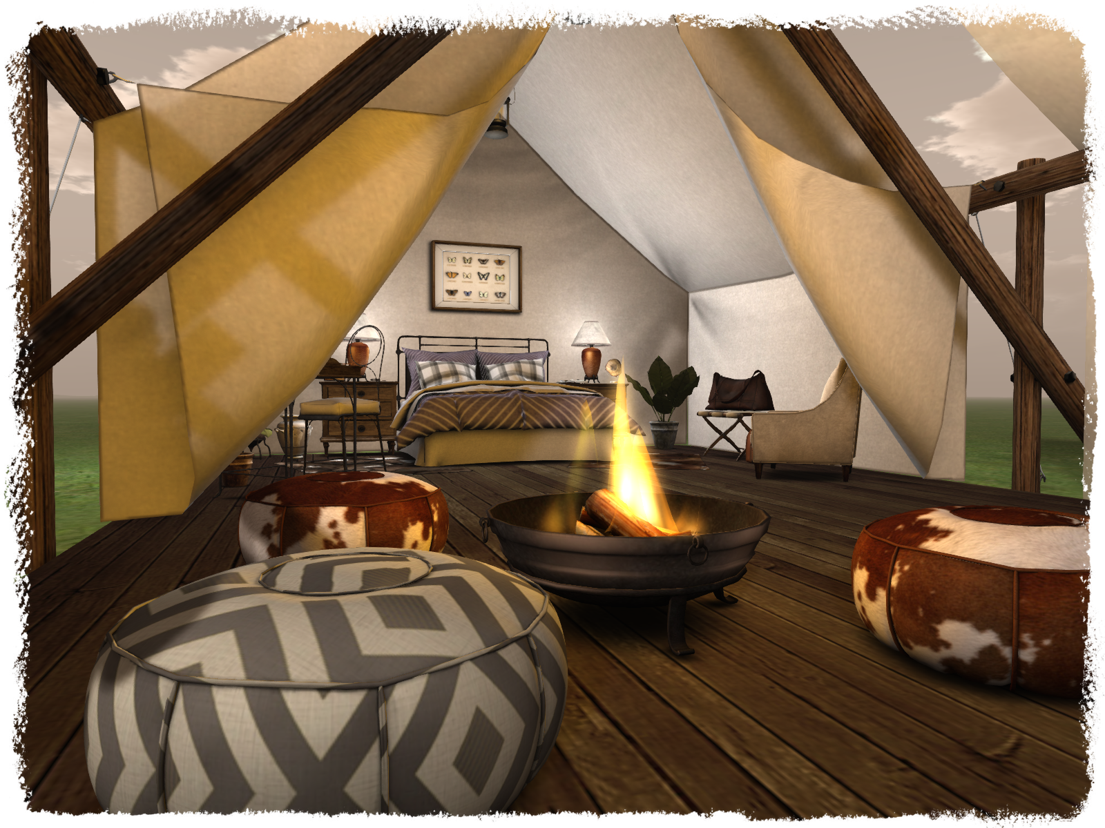 You can even buy the set unfurnished (should you so wish, madness if you ask me) and purchase the furniture separately but personally I think your money is best spent buying the full set.  It’s an absolutely fantastic purchase, and will look as much at home in a virtual camp-site as on a virtual safari. The possibilities are endless, and it’s a fantastic creation as usual from the BAZAR brand.  BUT don’t take my word for it, go and visit in-world to see it, play with the animations and experience virtual Glamping for yourself!