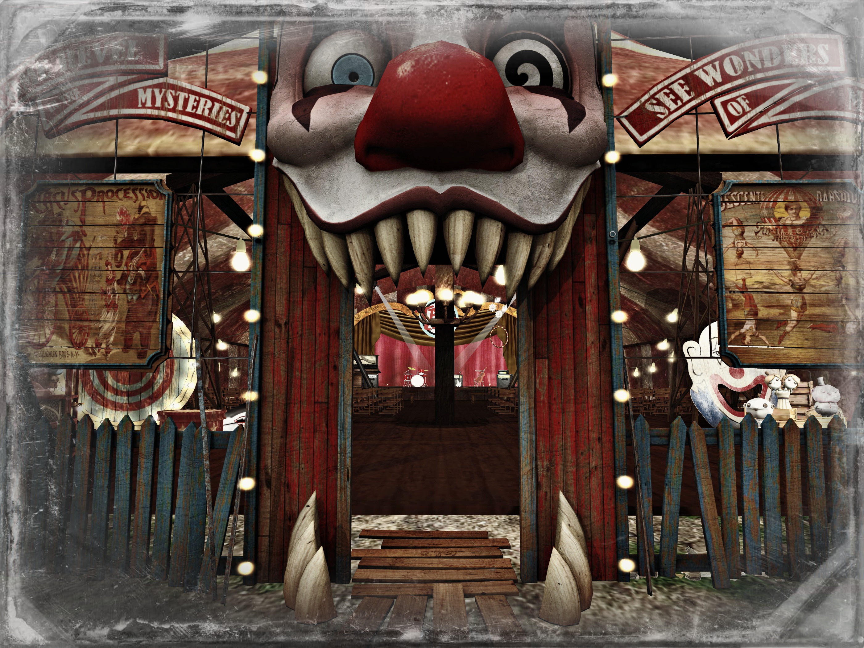 TAG GACHA has begun and the theme is ‘The Side Show’. It’s an absolute must visit if you like twisted clowns, bearded ladies and especially ‘American Horror Story: Freak Show‘. The location is incredibly well-styled and evocative so be sure to take a few snaps as you begin your Tag Gacha game. It’s incredibly enjoyable and I was chuffed to win the ISON rare; this turn of the century style dress that comes complete with a HUD of different colours. It’s rather evocative and reminded me of Eva Green’s fabulous turn in ‘Penny Dreadful’. I’m also wearing the latest skin from ZOUL CREATIONS in this shot, called ‘Chloe’, and like every release from Shantia Soulstar she’s a joy to wear and style. (I’ll talk more about her in a future post because you can’t really see her properly on this snap). My hair is by MINA from KUSTOM 9 and really does add a turn of the century vibe to this shot.