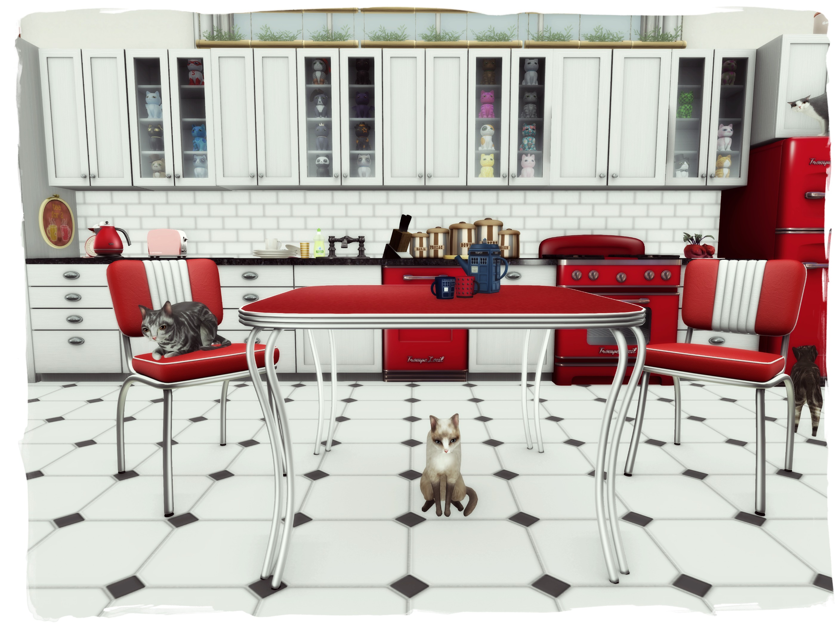 As you walk in the first thing you see is a large space with a kitchen clearly visible. Which is funny because the big tiled space is actually designated as a bathroom BUT for me it screamed out for a glorious kitchen and some suitably fancy decoration, which is just what I added. I have TWO favourite kitchens in Second Life. They are the BAZAR ‘Toronto Kitchen’ because of the modular options and ability to adapt it to many different designs, and this TROMPE LOEIL ‘Retro’ number. I’ve never had any issues fitting and adapting this to suit my needs. It’s absolutely perfect with a 1950’s feel and the animations that are incorporated make for some great photo opportunities.