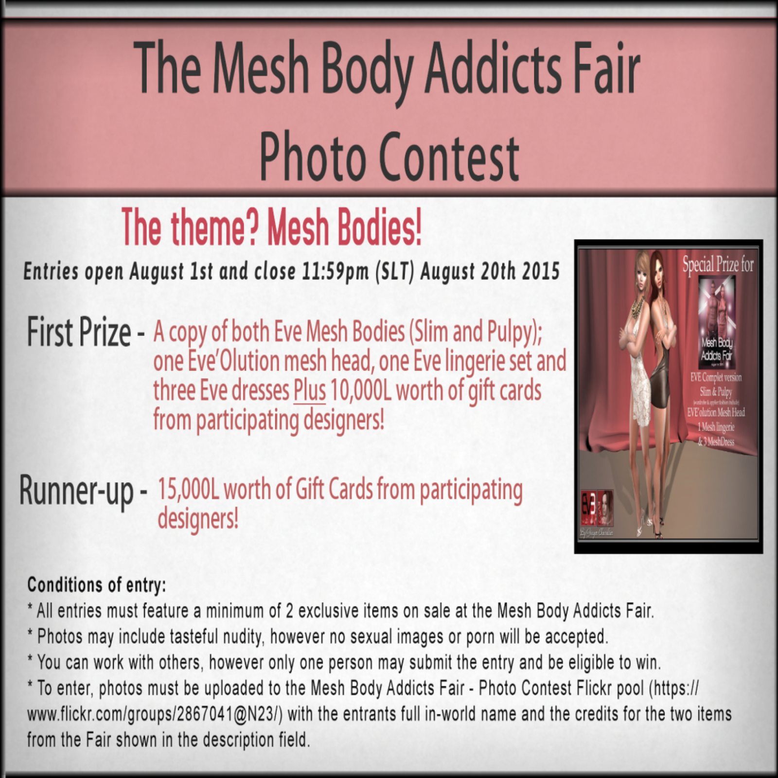 Quick Kitty PS: There’s a cracking competition being run for the duration of THE MESH BODY ADDICTS event that is well worth your entering, see the details below and good luck!