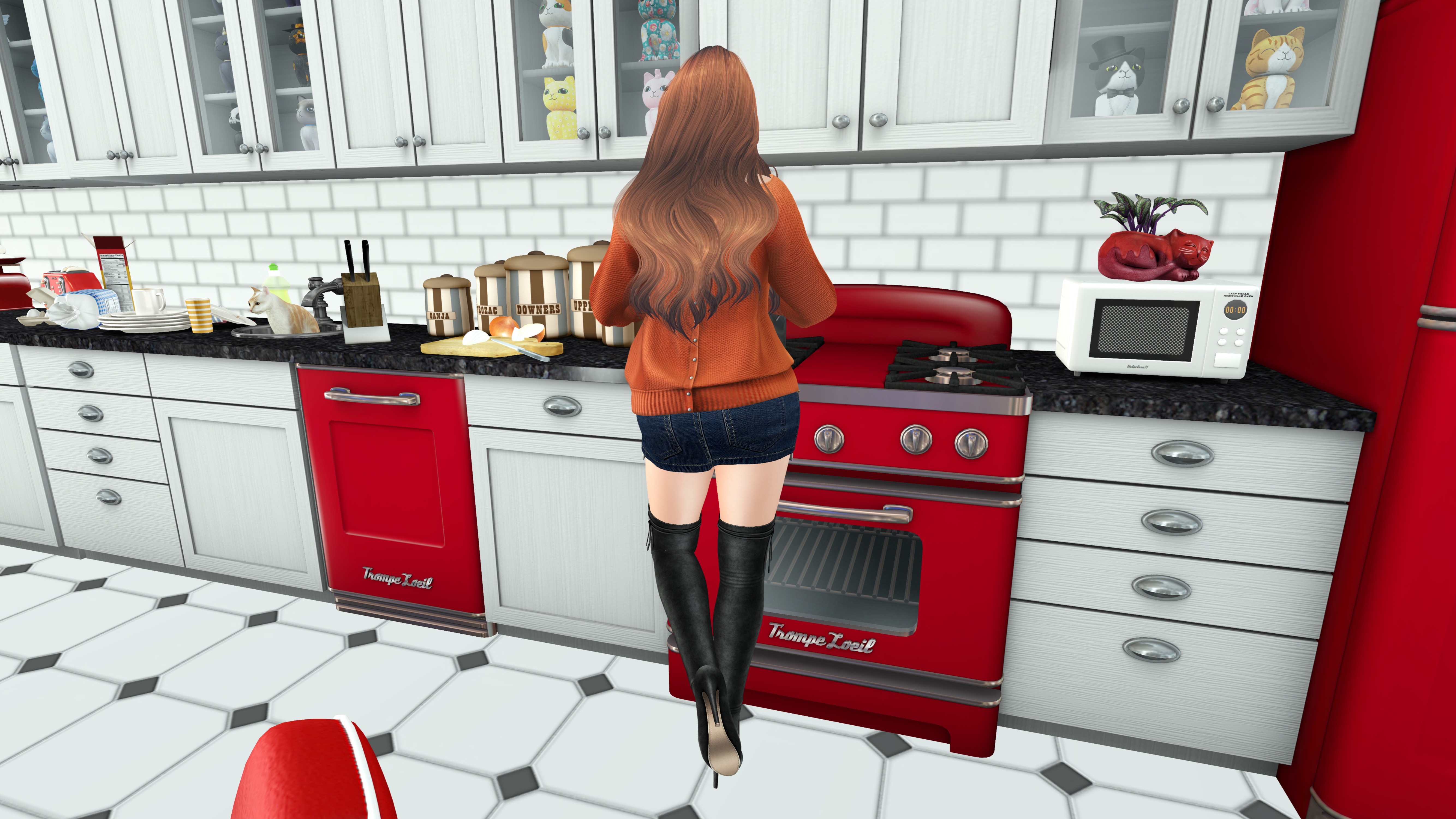 For a start, I absolutely LOVE this ERRATIC jumper that is currently available in the latest round of UBER. It fits like a dream on my Maitreya bod, has lovely sleeves and scoop neck and a delicate button fastening down the back. If you’ve been reading Kittywitchin‘ for a while then you’ll know I have a thing about jumpers, or sweaters as our friends across the Atlantic tend to call them. I know it’s strange, but even in a virtual world at this time of year you’ll find me wearing clothes that reflect the real life seasons. I could be wearing a lovely bikini and chilling on a beach sim somewhere, but seeing as I’m in the northern hemisphere and I’ve got the heating on, it’s unlikely.