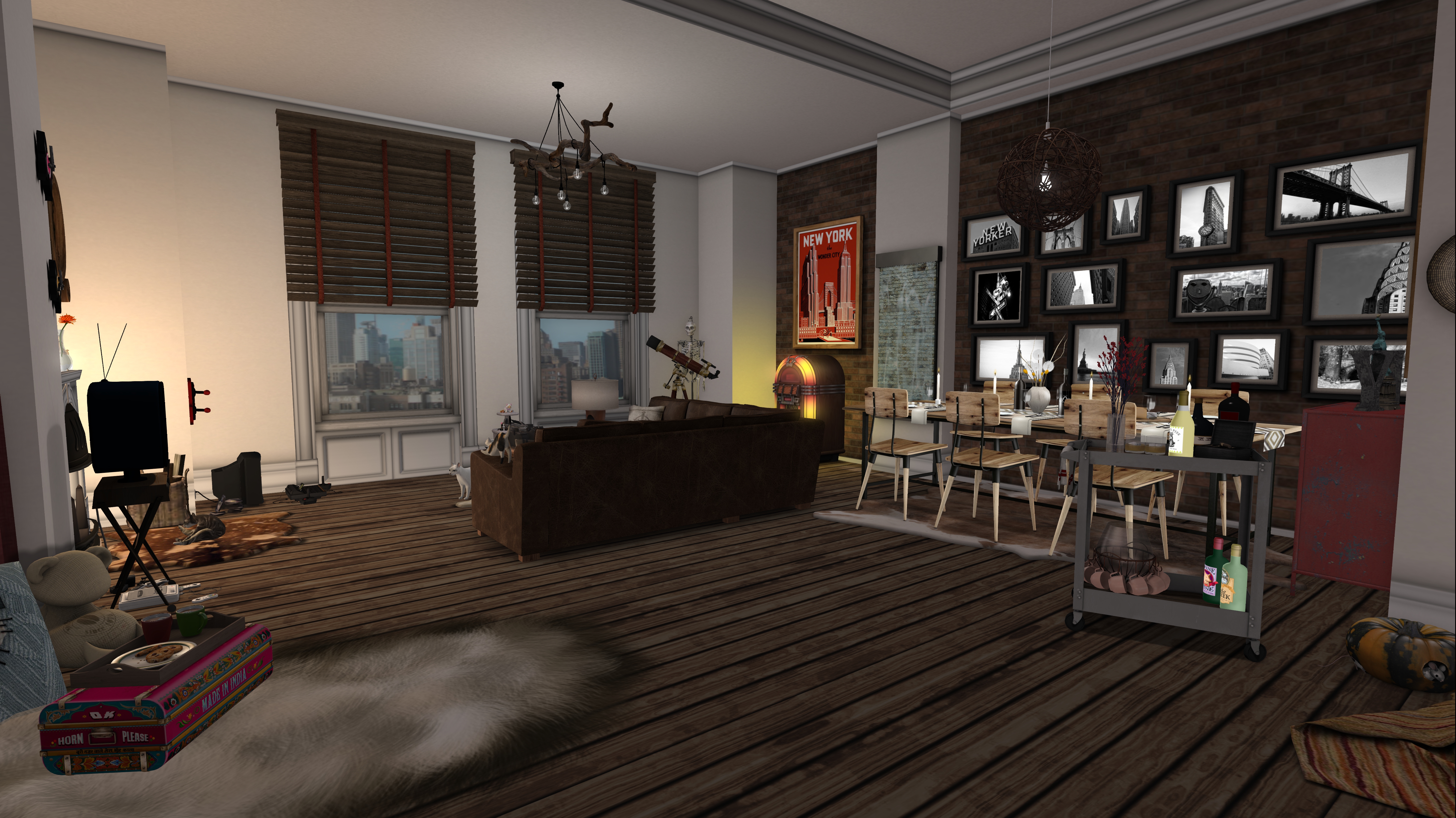 home_008As I’ve said before on these pages I find a lot of solace in my skybox.  There’s something very satisfying about logging in to my virtual home and finding all my familiar virtual stuff and things there waiting for me. It blows my mind to think that none of the furnishings, animals and ephemera it contains are physically real, they all live on a server somewhere, but with a splash of creator’s imagination and  a deftly applied texture my favourite comfy chair comes to life, along with all my favourite things proudly on display within.   I adore my skybox home, and although  I do seem to covet and collect skyboxes on a regular basis  I’ve never found it in my heart to replace it. The skybox that I live in is The New York Penthouse from Barnesworth Anubis. It’s my ‘Mary Poppins’ space: to me it’s practically perfect in every way.  That said, there are a few things I would love to see changed, so this  blog-post is going to serve as a wishlist of sorts just in case the creator, BARNESWORTH ANUBIS, happens to come across this post.  So forgive my flight of fancy dear reader and allow me to begin: Hey Mr. Anubis! If you ever decided to ‘upgrade’ this particular skybox design, I have some ideas that you may be interested in?   First up, although I love the open plan could you add a bedroom door? It does get a tad draughty and sometimes the light from the kitchen keeps me awake when Jez is making a midnight snack.   I know I could add a screen to cover the door, but it wouldn’t look quite as polished as if you did it. Same goes for the internal window feature; I actually quite like it but I could see that for some having a solid wall would be more useful.  I always love the floor textures that you  apply to your builds, they’re exemplary, and in my skybox the wooden floor looks especially amazing.  But the brickwork could perhaps do with appearing a tad sharper, especially when zoomed in.   I’d also like the option to have the space for a fireplace, but to be able to incorporate one of my choosing.  (I’m very  partial to the Cast Iron Fireplaces that Apple Fall has released recently and would love to be able to use one of those in my skybox..) Perhaps my biggest customer suggestion for this particular skybox is that I would LOVE another room. Perhaps the floorplan could be increased by removing some of the generous space that is available as you walk in? Or, and even better to my mind, is to add a staircase up to another floor. I’ll take that even further: I would have the staircase situated towards the end of the bedroom  leading up a level.  Even better than that? It would be a cast iron  spiral staircase too! (OOH can you imagine? I can!)home_006Back to (virtual) reality. Now, some of you are reading this I’ve no doubt and thinking, but Kitty, this is a MOD skybox, so why don’t you make these changes yourself? Simple answer? I don’t know how.  I can make rudimentary changes like adding textured panels but I don’t know how to ‘undo’ a build of this magnitude to create extra rooms etc.  Besides, even if I did it, my finished work would never have the panache that a BARNESWORTH ANUBIS build would have. I mean come on, I’d ruin it, and that simply will not do! So here’s a Kitty-plea: Barnesworth, should you happen to be reading this, PLEASE consider making a revised version of this skybox with some enhanced features and perhaps even the touches that I’ve highlighted here.  I know many people who would be incredibly happy if you did that, but most of all me, and I’d be the first in-line to throw the Lindens at you once it was on sale! Here’s hoping my dream becomes a reality.  But it doesn’t have to; sometimes the nice things about flights of fancy is that they’re just that.  After all, there’s a lot to be said for being careful what you wish for, I mean what if Barnesworth released a revised version of this skybox and I didn’t like it?! EEP! Keyhole_008But when it comes down to it, I’ve lived a long time in this skybox and I have no intention of leaving it.  It makes me incredibly happy every time I log in, and after all, that’s what life, real or virtual,  should be about.  With that at the forefront of my mind then, I shall go on living my Second Life  within the comfortable confines of my virtual abode.  Some people have wooded glens and open spaces as their sacred space; but mine is a bundle of pixels and polygons on a monitor that with a bit of magic turn into something wonderful that I absolutely adore.  home_004Barnesworth Anubis NYC apartment